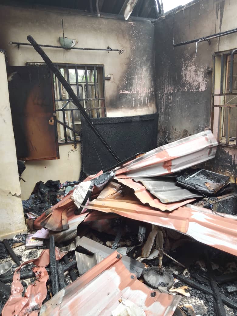 Fire gutted seven self-contained apartments in an eleven self-contained residential building at GQ Hostel, in Yakuba Area of Ilorin Kwara State.